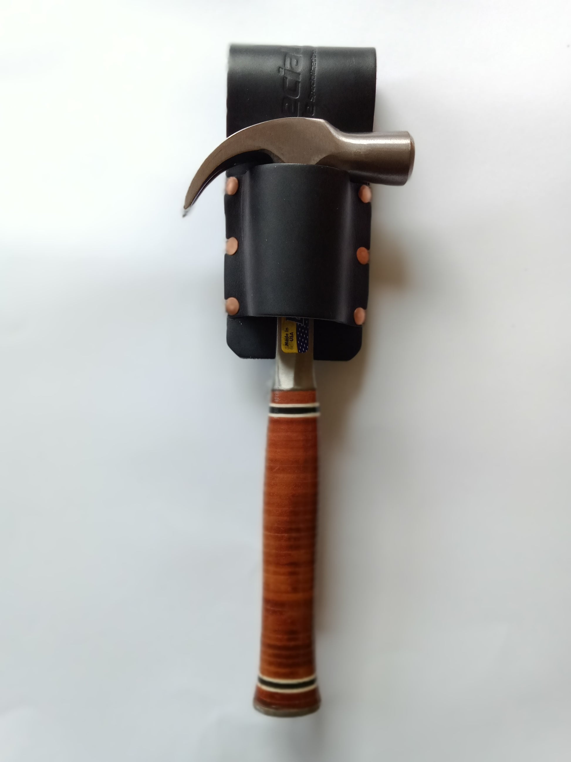 Our Awesome Straight Leather Hammer Holster has a classic style lengthened Neck area for comfort and classic durability. The Handle insert size is 45mm x 37mm; with an 80mm length of leather down the front for ultra stability. Our Copper series is made to last. Made of thick durable leather and hand hammered in copper rivets. Made by hand in our Australian workshop.