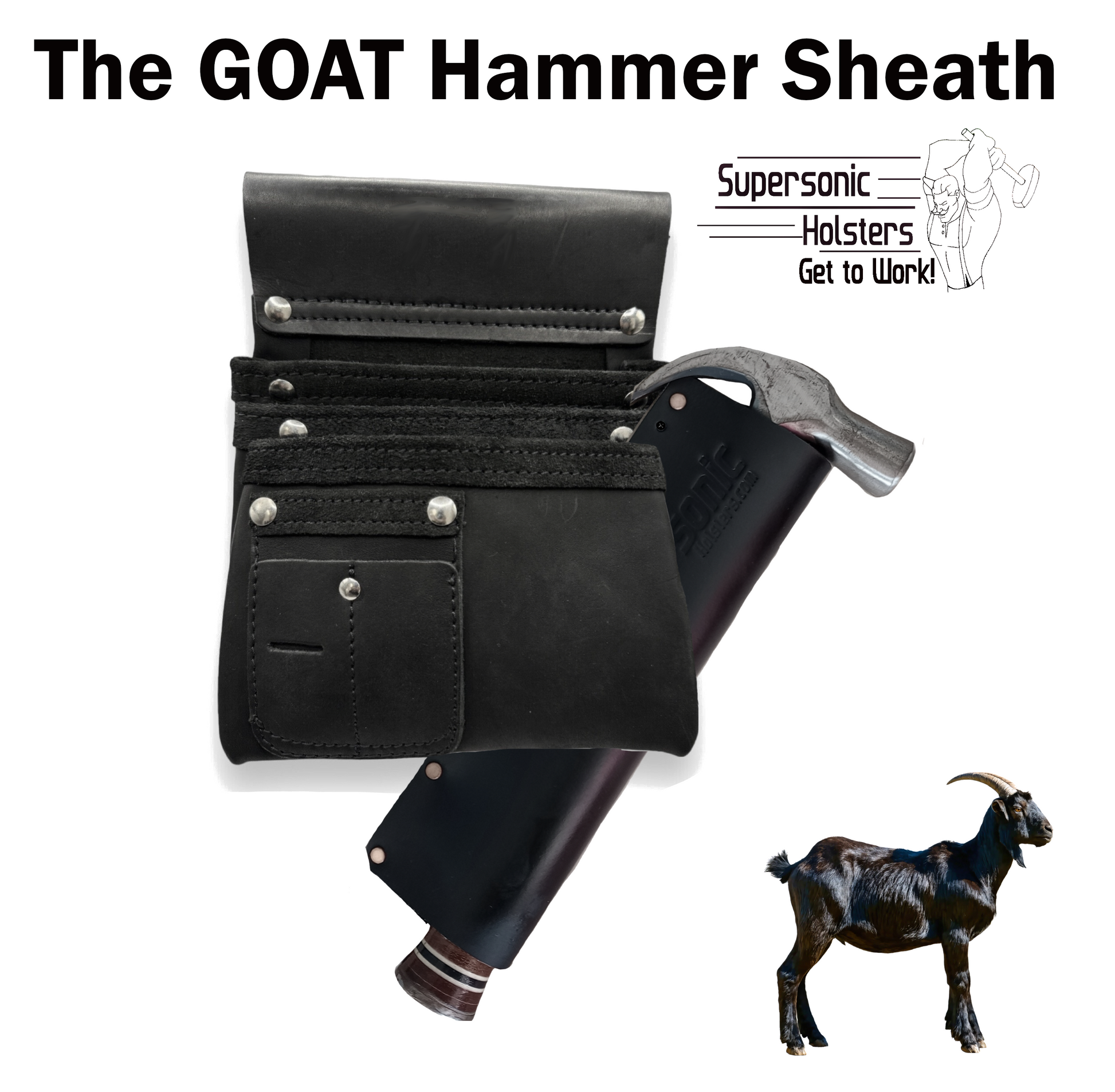 This Super Durable and Long Hammer Sheath is Made for extra comfort. Its the GOAT! A hammer can comfortably sit in it at an extended length. It's designed to last, made of tough leather and zinc/aluminum rivets with an option of traditional copper rivets. It holds pretty much any hammer you can think of with a diameter of 45mm x 90mm at the top (1.77inch x 3.5 Inches).