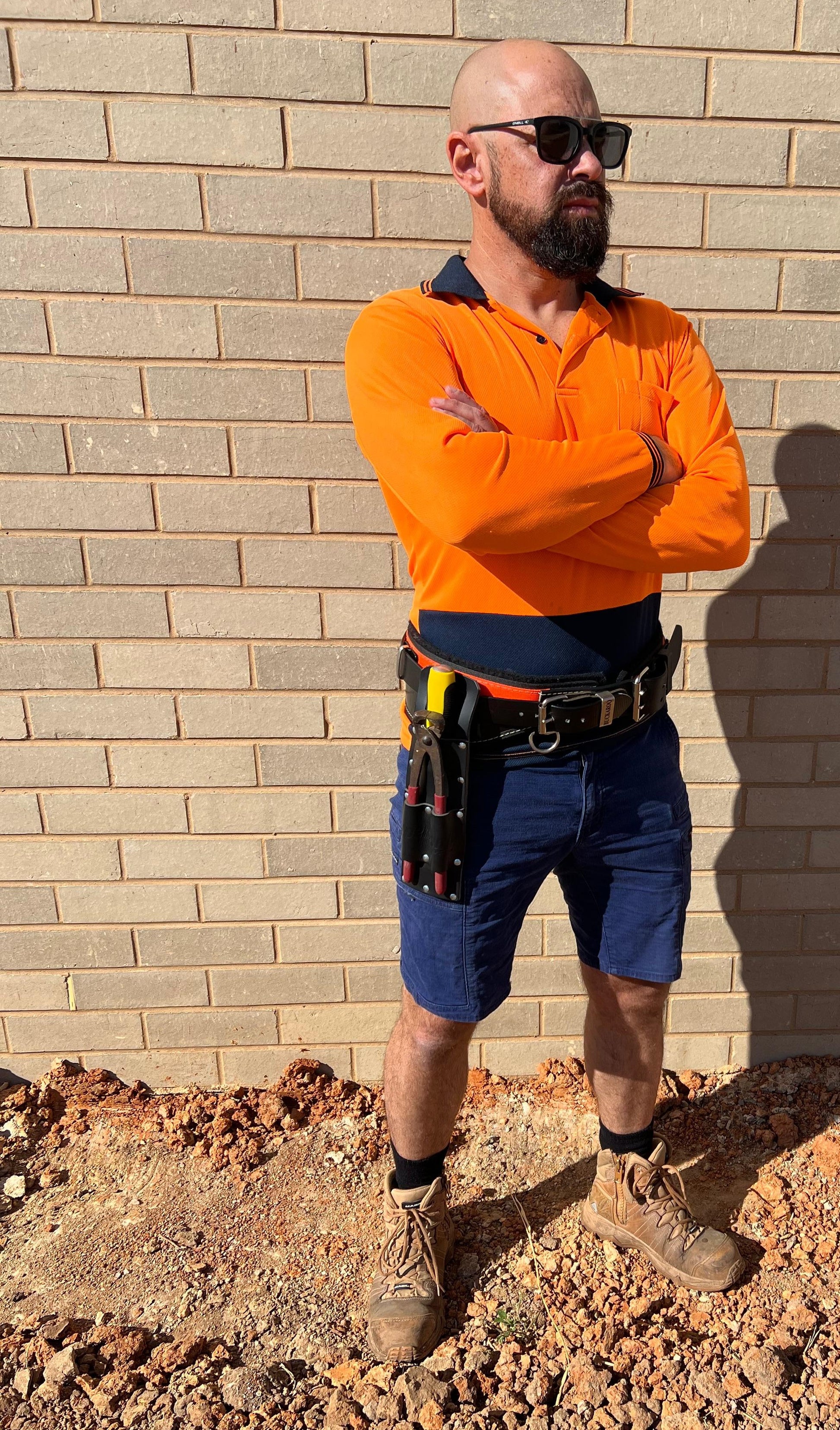 Our Light and Tough holster can Holster wide and large Chisels and a pair of Snipps (300mm length x 90mm holster) this Leather design is strong and comfortable with a 50mm wide chisel insert and snips holster with spacing between inserts is 40mm the width of the inserts is 22mm x 20mm . Our Light ‘N’ Tough series is designed to last and be light, made of tough leather and strong zinc/aluminum rivets.