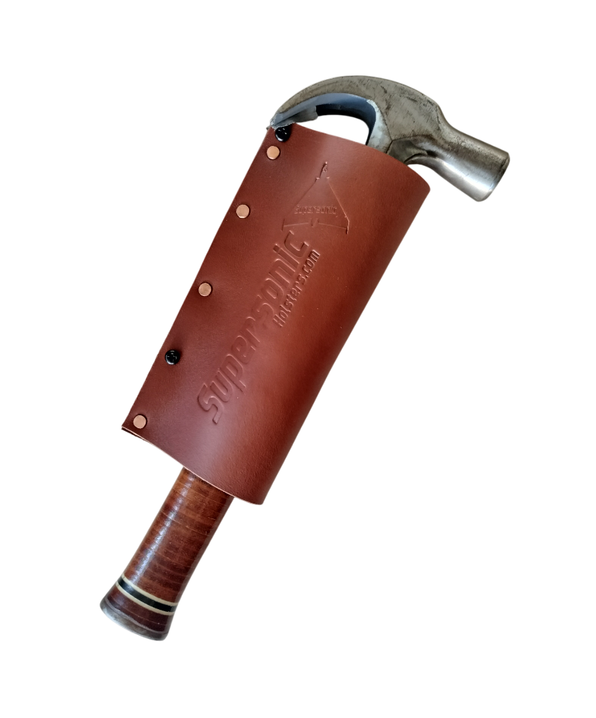 Add an additional hammer to your bag with this Nail Puller/ Hammer Sheath! it’s made to attach to any Bag, it comes with three Bolts and Locking nuts for Attachment. We Recommend attaching at 37 Degrees from Vertical. Insert size is 25 x 57mm. (2.24 inch x 1 inch). Available with Either Zinc/Aluminium or Traditional Copper Rivets. Its super durable, grab one today!